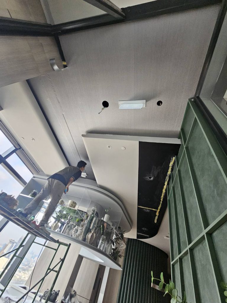 งานปิดผิวฝ้าเพดานโครงการคอนโด Nue Riverest Ratburana ริมแม่น้ำเจ้าพระยา กรุงเทพฯ